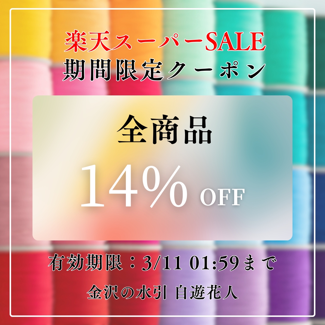 楽天市場【金沢の水引 自遊花人】で使える セール限定クーポンを発行いたします。